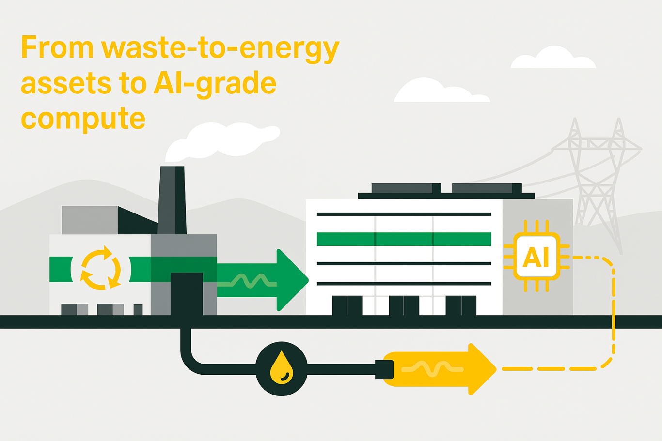 Chaque site Green DC est développé à proximité immédiate d’une unité de valorisation énergétique des déchets, permettant une alimentation électrique et un refroidissement bas carbone et prévisibles. Cette proximité réduit la dépendance aux réseaux fortement sollicités et améliore la continuité de service.